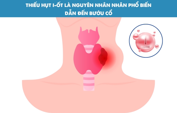 Đây là nguyên nhân gây bướu cổ phổ biến nhất. I-ốt là một vi chất cần thiết để tuyến giáp sản xuất hormone. Khi cơ thể không đủ i-ốt, tuyến giáp phải tăng sinh tế bào để sản xuất đủ hormone, dẫn đến phì đại và hình thành bướu cổ.