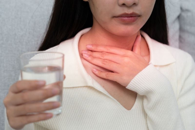 ● Trào ngược dạ dày thực quản (GERD): Khi axit dạ dày trào ngược lên thực quản và vùng họng, nó có thể gây bỏng rát niêm mạc, dẫn đến đau họng kéo dài, khàn tiếng hoặc cảm giác vướng nghẹn, đặc biệt rõ rệt vào ban đêm hoặc sau khi ăn no.