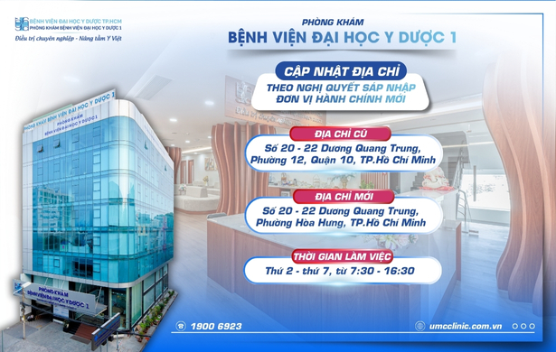 Từ ngày 1/7/2025, địa chỉ Phòng khám Bệnh viện Đại học Y Dược 1 chính thức thay đổi theo Nghị quyết sáp nhập đơn vị hành chính tại Thành phố Hồ Chí Minh như sau: