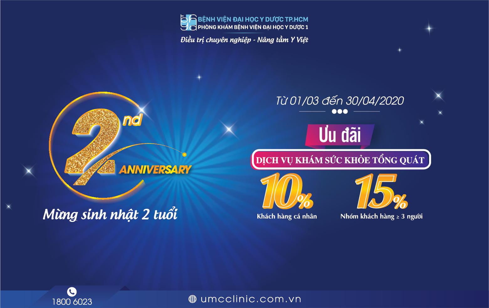 🥳 🎂🥳 Phòng khám Bệnh viện Đại học Y Dược 1 xin gửi lời cám ơn chân thành đến Quý khách hàng, đã luôn tin tưởng lựa chọn chúng tôi là người bạn đồng hành chăm sóc sức khỏe cho Quý khách và Gia đình trong suốt chặng đường 02 năm qua.