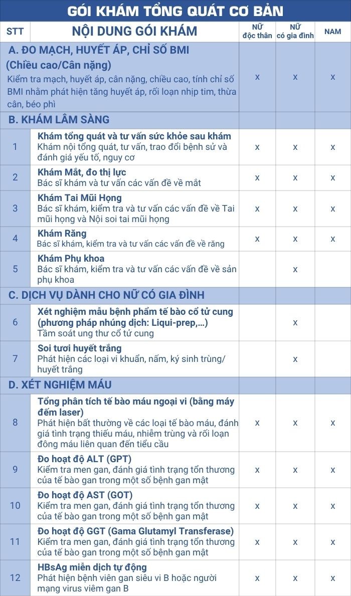 2. Chi tiết gói khám sử khỏe tổng quát cơ bản tại PKBVDHYD1