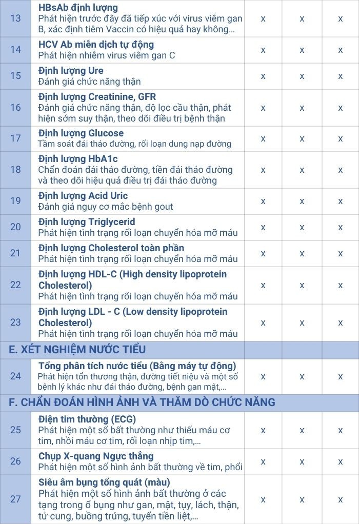 Gói khám này cũng được đội ngũ xây dựng đầy đủ các chuyên khoa như: Nội tổng quát, Khám mắt, răng-hàm-mặt, tai-mũi-họng, khám phụ khoa (Đối với Nữ) Xem chi tiết gói khám: