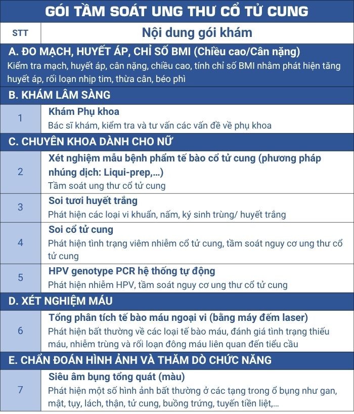 3. Thông tin chi tiết gói tầm soát ung thư cổ tử cung tại Phòng khám Bệnh viện Đại học Y Dược 1