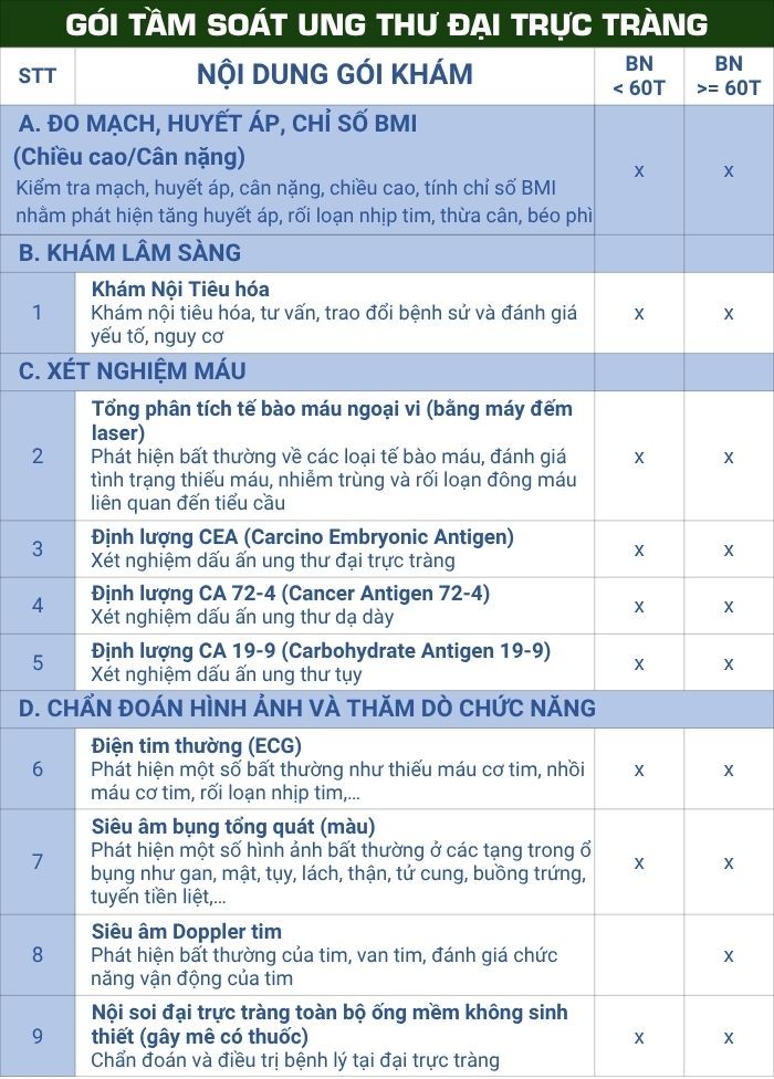 3. Thông tin chi tiết gói tầm soát ung thư đại trực tràng tại Phòng khám Bệnh viện Đại học Y Dược 1
