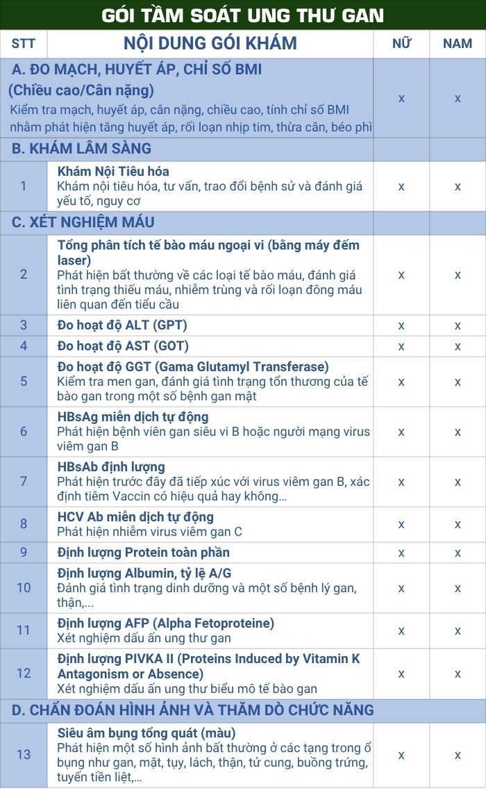 3. Thông tin chi tiết Gói khám Tầm soát ung thư gan