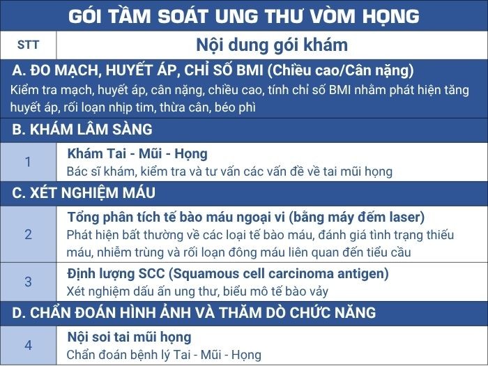 3. Thông tin chi tiết gói tầm soát ung thư vòm họng tại Phòng khám Bệnh viện Đại học Y Dược 1