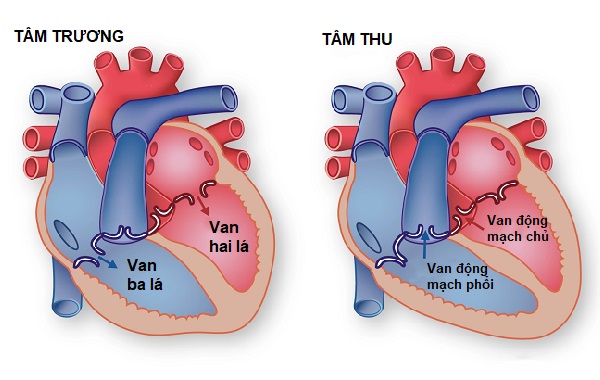 - Van ba lá: Cho phép dòng máu chảy từ tâm nhĩ phải xuống tâm thất phải.