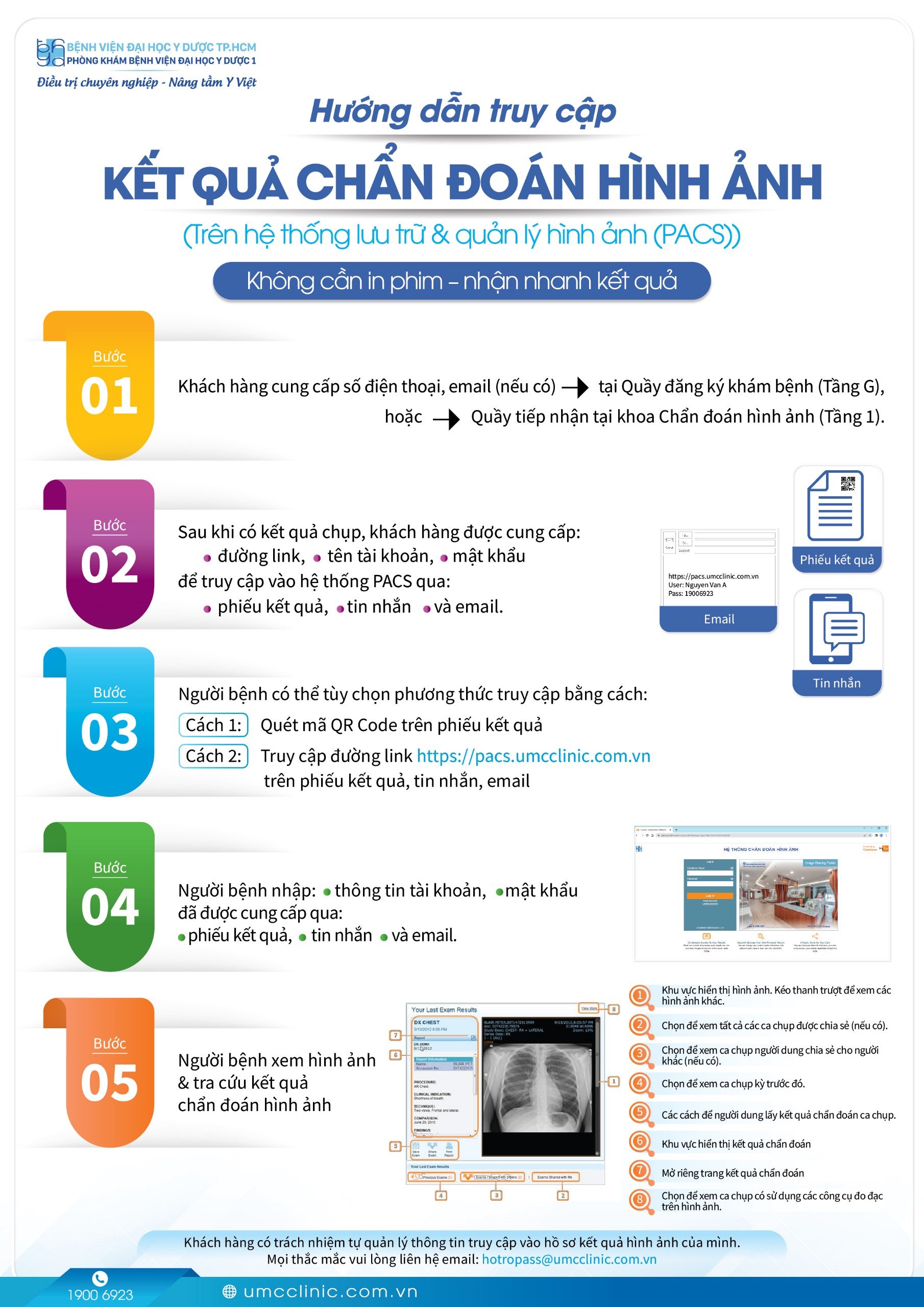>>>> Mọi thắc mắc hoặc cần hỗ trợ kỹ thuật, vui lòng liên hệ bộ phận quản lý hình ảnh qua email hotropacs@umcclinic.com.vn. hoặc số hotline 1900 6923 (Thứ Hai – Thứ Bảy: 07h30 - 16h30).