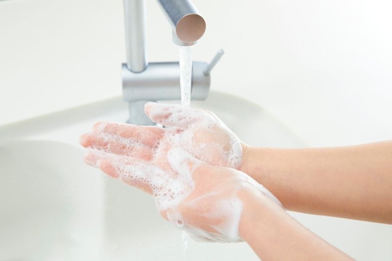 Rửa tay bằng xà phòng trước khi ăn và sau khi đi vệ sinh để ngăn chặn vi khuẩn xâm nhập