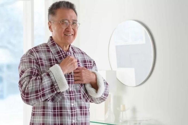 Khi tập thể dục, người tập có thể mặc một chiếc áo giữ nhiệt mỏng hoặc áo thể thao chuyên dụng thấm hút mồ hôi tốt. Tùy vào thời tiết, người cao tuổi có thể mặc thêm áo khoác cản gió ở bên ngoài. Đừng quên đeo tất, găng tay, mũ nón để che chắn các vùng dễ mất nhiệt như cổ, ngực, bàn tay, bàn chân.