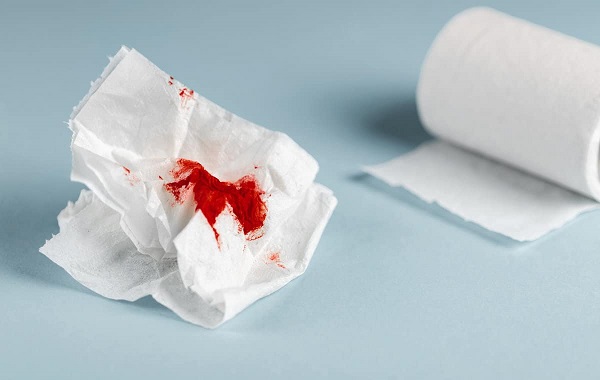 - Máu đỏ trong bồn cầu hoặc giấy vệ sinh