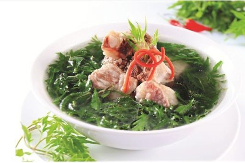 Canh sườn non nấu lá đinh lăng giúp tăng cường tuần hoàn máu não