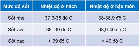 Dưới đây là bảng phân độ sốt: