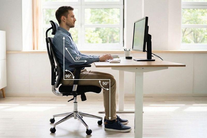 Duy trì tư thế ngồi làm việc 90 90 90 để giảm áp lực lên cột sống