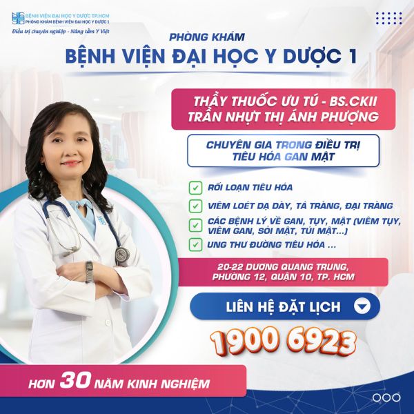 Với 30 năm công tác khám chữa bệnh, thầy thuốc ưu tú BS.CKII Trần Nhựt Thị Ánh Phượng là một trong những chuyên gia hàng đầu về Tiêu hóa – Gan Mật. Bên cạnh những kinh nghiệm tích lũy trong quá trình công tác, Bác sĩ còn tham gia nghiên cứu, đào tạo chuyên sâu và nhiều khóa tập huấn nâng cao năng lực về Tiêu hóa – Gan Mật ở trong và ngoài nước.