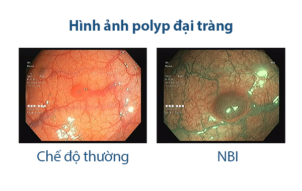 Hình ảnh polyp đại tràng ở chế độ thường và NBI